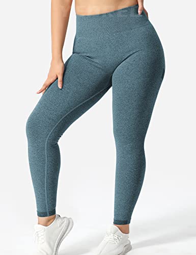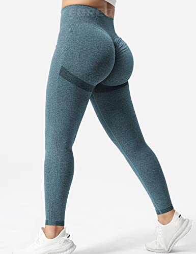 YEOREO Scrunch Butt Lift Leggings for Women Workout Yoga Pants Ruched Booty High Waist Seamless Leggings Compression Tights Blue M