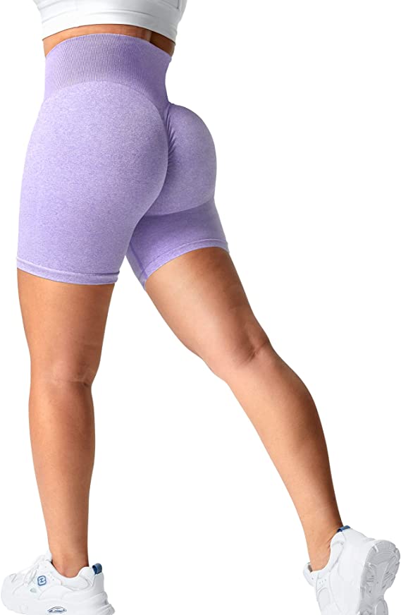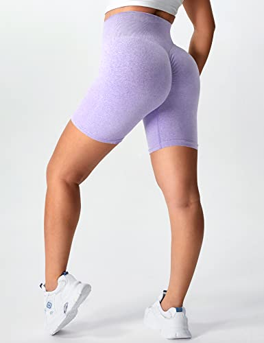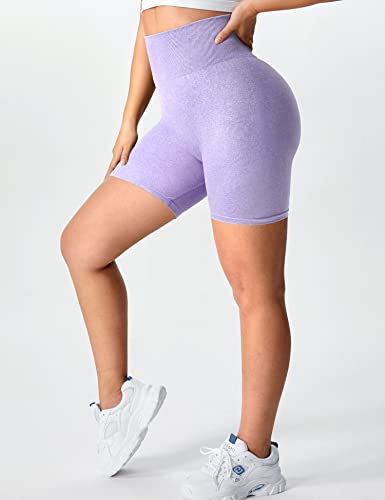 YEOREO Women Scrunch Workout Shorts Butt Lifting High Waist Gym Yoga Seamless Biker Shorts Lilac M