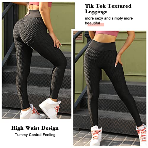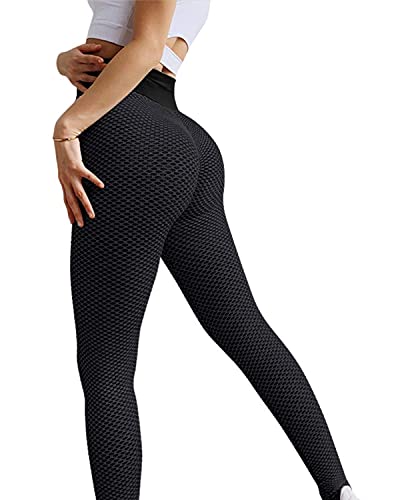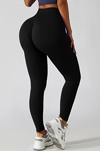 ViCherub Scrunch Butt TIK Tok Leggings for Women Butt Lifting,Workout Yoga Pants Tummy Control High Waisted Booty Lift Anti Cellulite Textured Gym Athletic Running Tights Black Plus Size
