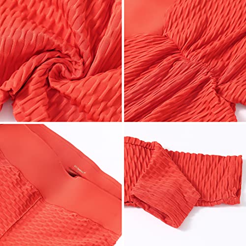 ViCherub Scrunch Butt TIK Tok Leggings for Women Butt Lifting,Workout Yoga Pants Tummy Control High Waisted Booty Lift Anti Cellulite Textured Gym Athletic Running Tights Fiesta Red Small