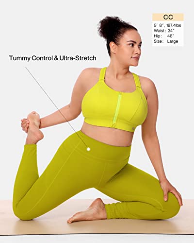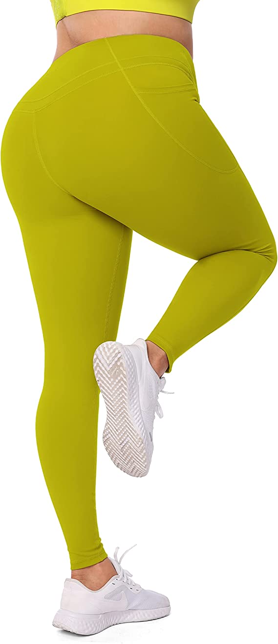 VFUS Butt Lifting High Waist Workout Leggings for Women Tummy Control with Pockets Non See Through Yoga Pants Plus Size (Small, Lime Green)