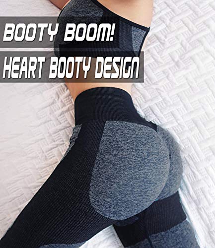KIWI RATA Women's High Waist Active Seamless Compression Fitness Leggings Running Workout Slim Butt Lift Yoga Pants (#1 Heart Booty Black, Medium)