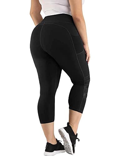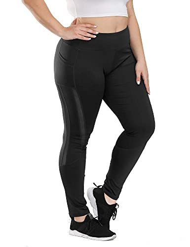 Uoohal Women's Plus Size Active Leggings High Waist Yoga Pants with Pocket Tummy Control Running Workout Athletic Legging