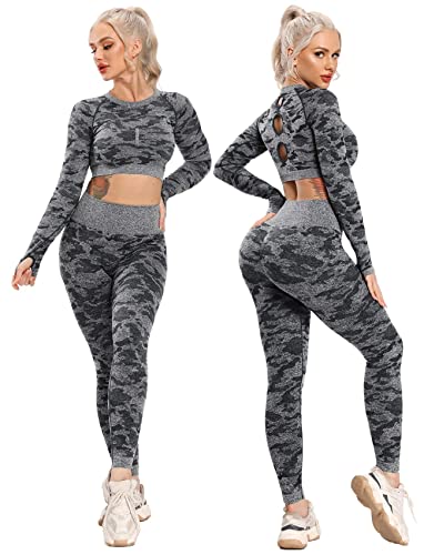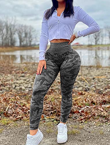 SEASUM Seamless Workout Leggings Women's High Waisted Camo Fitness Yoga Pants Butt Lifting Stretchy Tummy Control XL