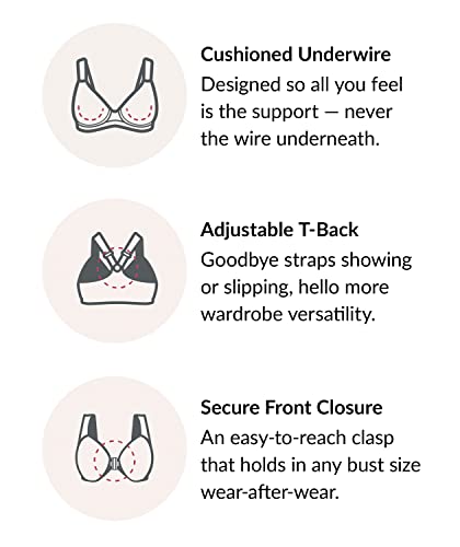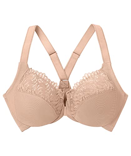 Glamorise Womens Front-Close T-Back Wonderwire Underwire #1246 Full Coverage Bra, Café, 42DD US
