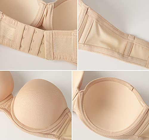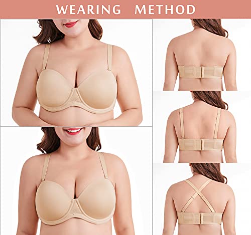 DotVol Women's Multiway Strapless Bra Full Figure Underwire Contour Beauty Back Plus Size Bra(38DD, Beige)